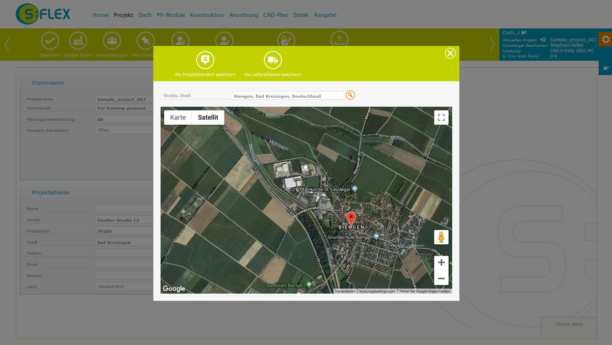 Im Folgenden sehen Sie Schritt für Schritt noch ein wenig detaillierter, wie Sie mit diesem S:FLEX Service schnell und exakt Ihre Solardach-Projekte erfassen und durchplanen